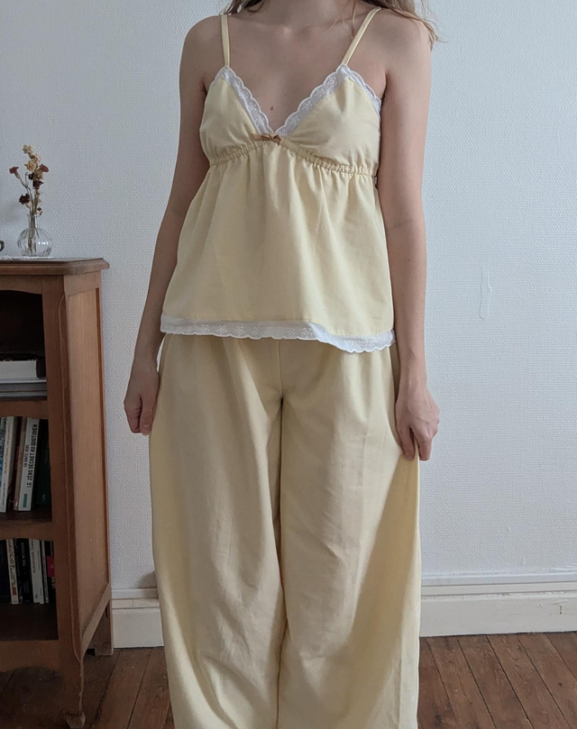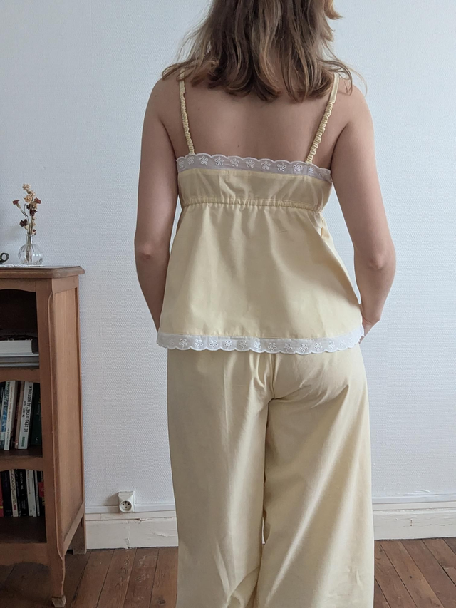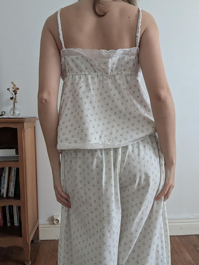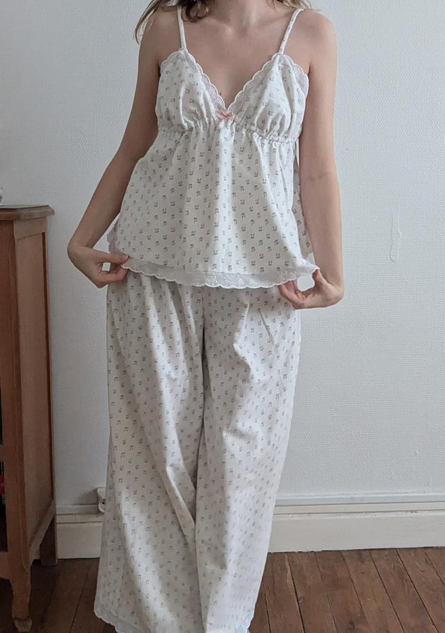 - Le pyjama est orné de dentelle ou broderie anglaise (envoyez moi un message pour choisir)