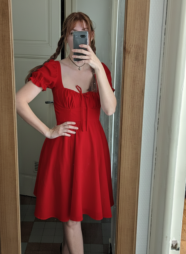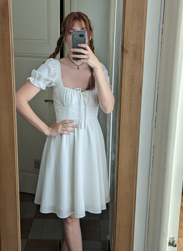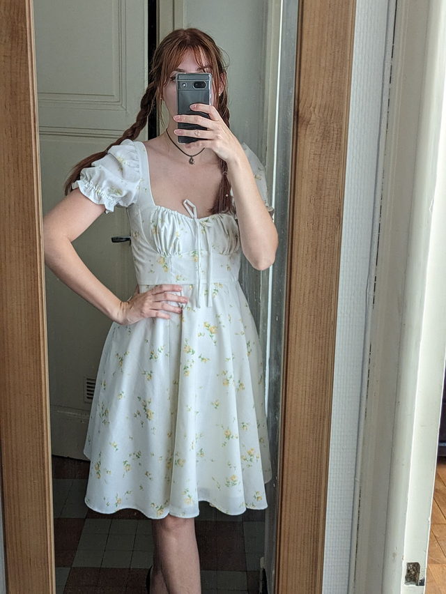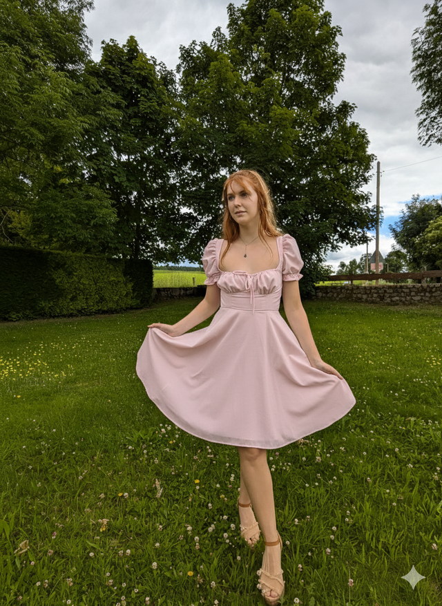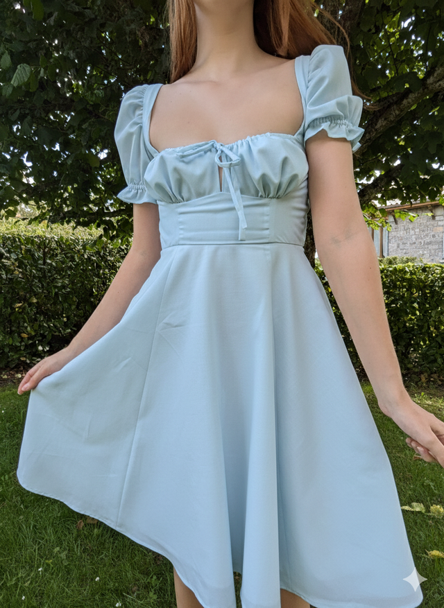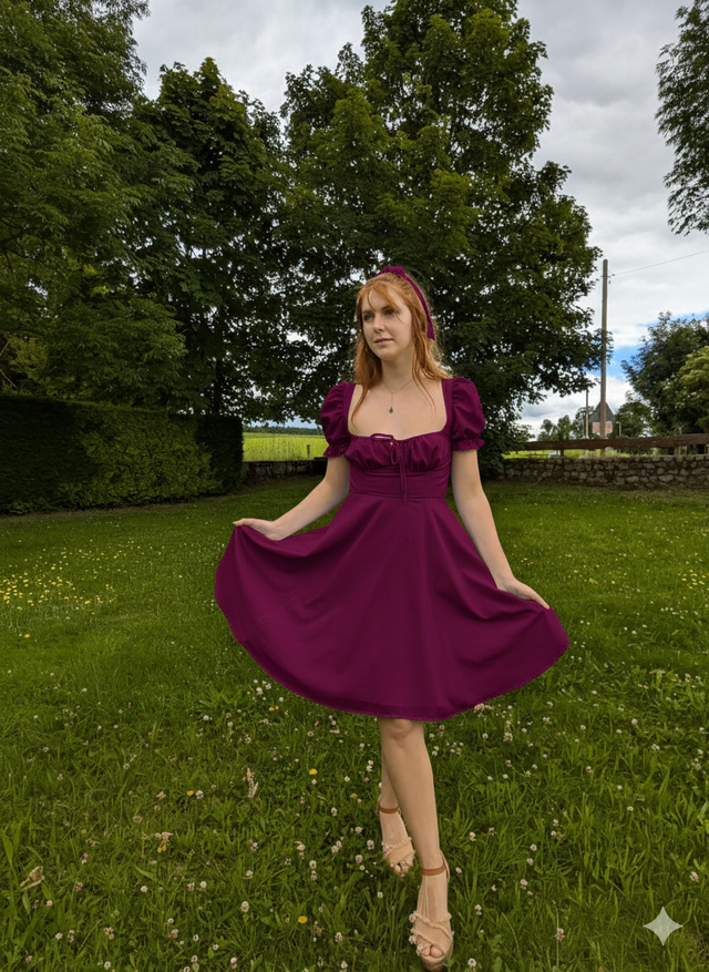 Robe romantique cottagecore avec bonnets froncés ajustables et jupe cercle, cousue à la main sur commande