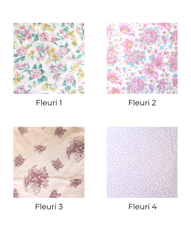 Les tissus proposés sont des draps ou du linge de maison de seconde main 100% coton (certains peuvent comporter une proportion de synthétique, contactez moi pour toute question)
