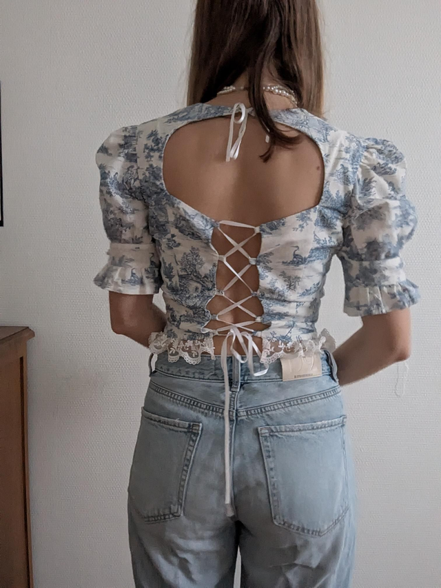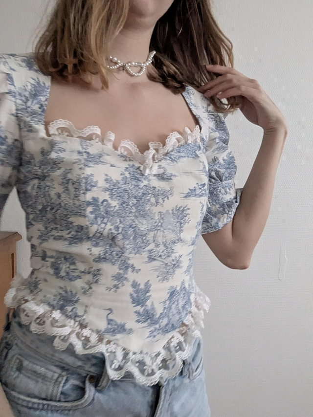 Top en toile de Jouy 100% coton et dentelle de seconde main 🫶🏻