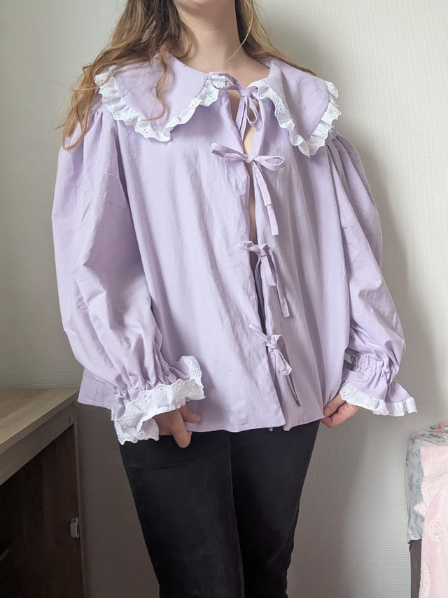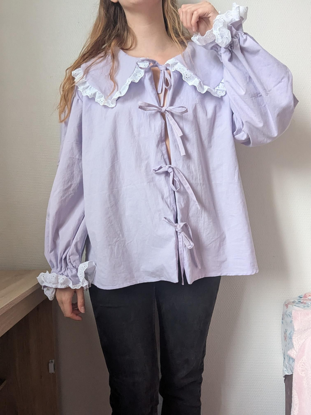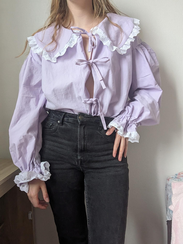 Blouse à grand col claudine et manches bouffantes, inspirée de la cape du Petit chaperon rouge