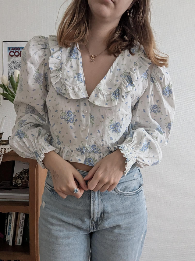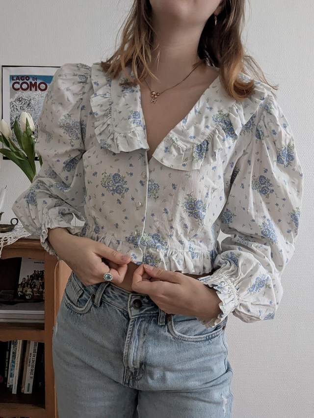 Chemisier romantique à volants cousu à partir d'un drap ancien à fleurs 100% coton et de jolis boutons nacrés vintage ✨