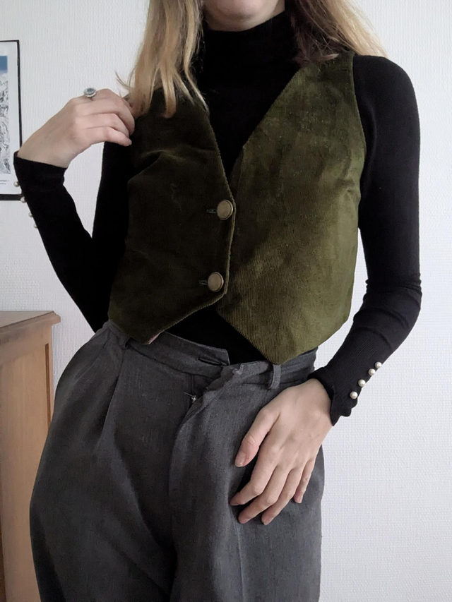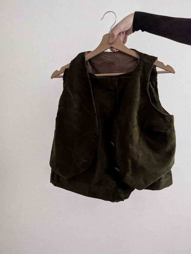 Ensemble short et veston en velours côtelé vert (il s'agissait d'un rideau !)
